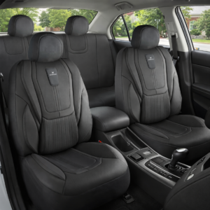 FUNDAS CUBRE ASIENTO COBRA CUERO SINTETICO DE TAPICERIA NEGRO CON GRIS